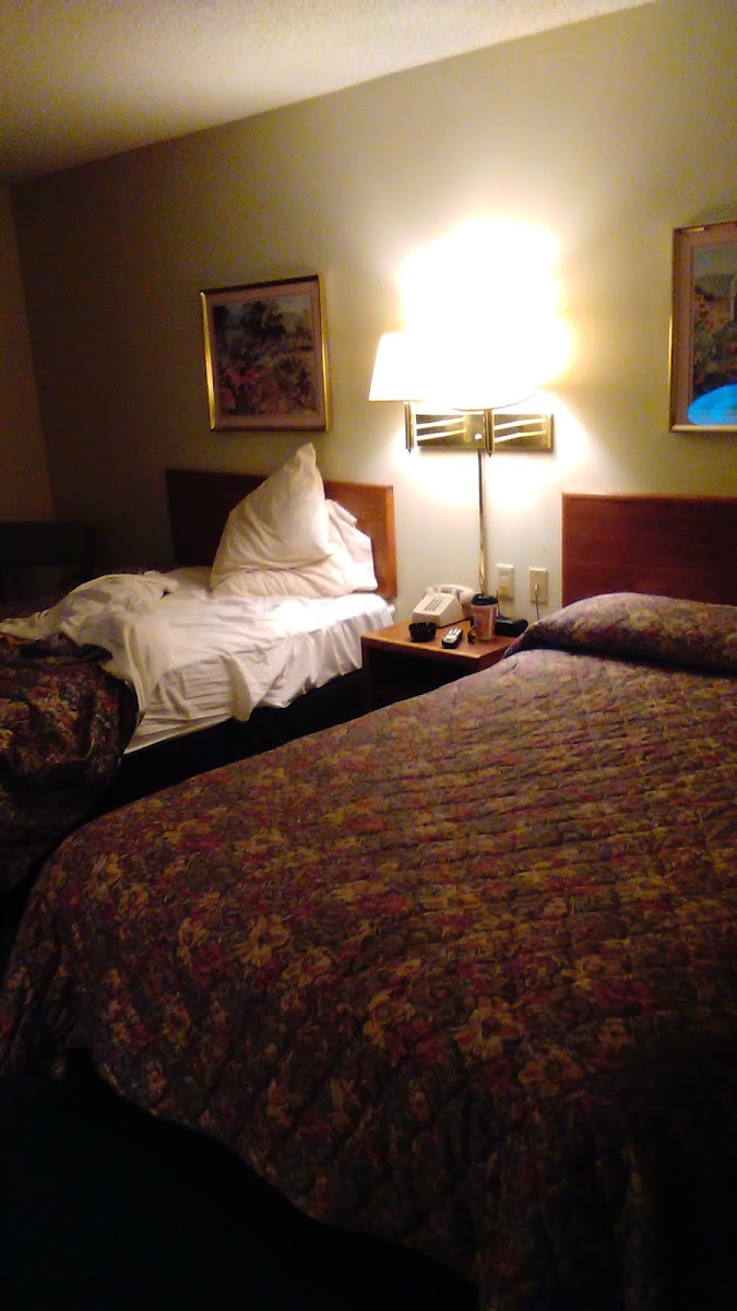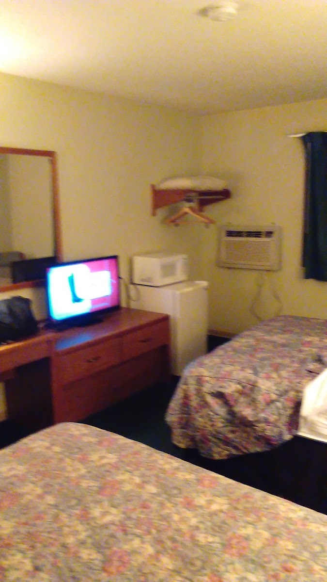 Driving through the state and hit a deer had to stop. The room was very comfortable and clean and since everyplace was closed the staff gave me and my son something warm to eat True it's a small town motel but it has friendly staff